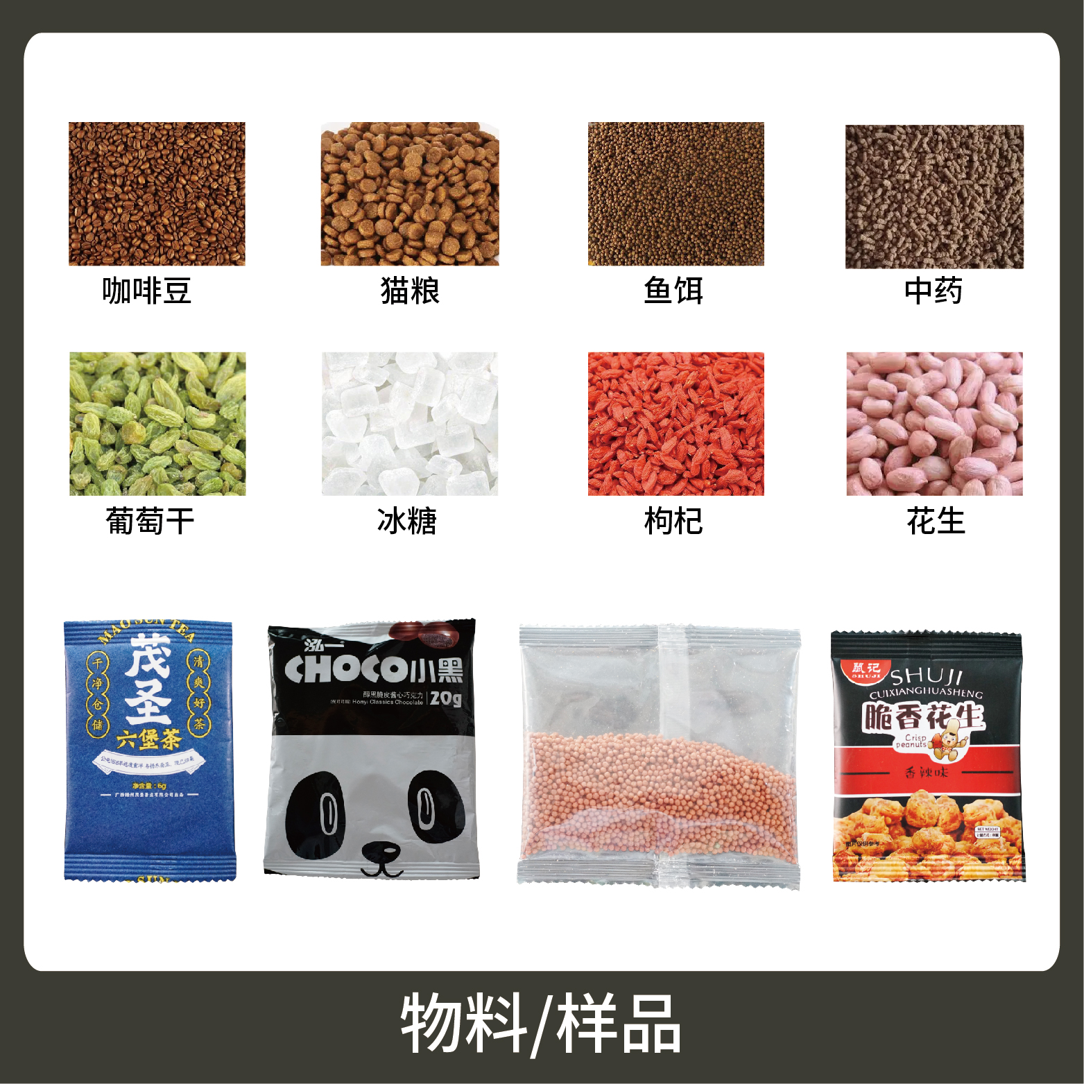 適用于各行業(yè)中堅(jiān)果、炒貨、干果、餌料、中藥等顆粒狀物品的計(jì)量包裝。
