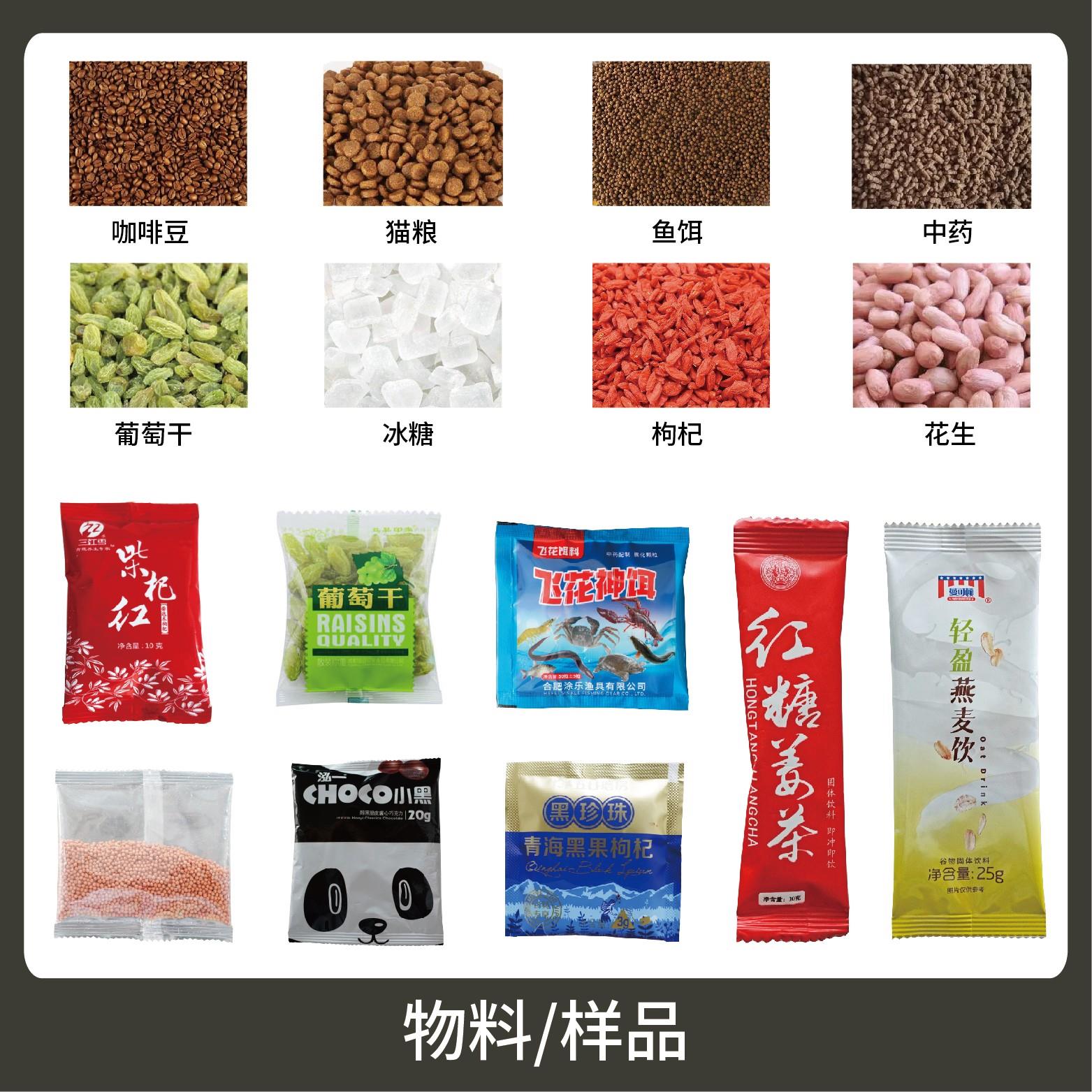 適用于食品、醫(yī)藥、化工、化妝品行業(yè)中顆粒物品的計(jì)量包裝,如:種子、枸杞、中藥顆粒等。