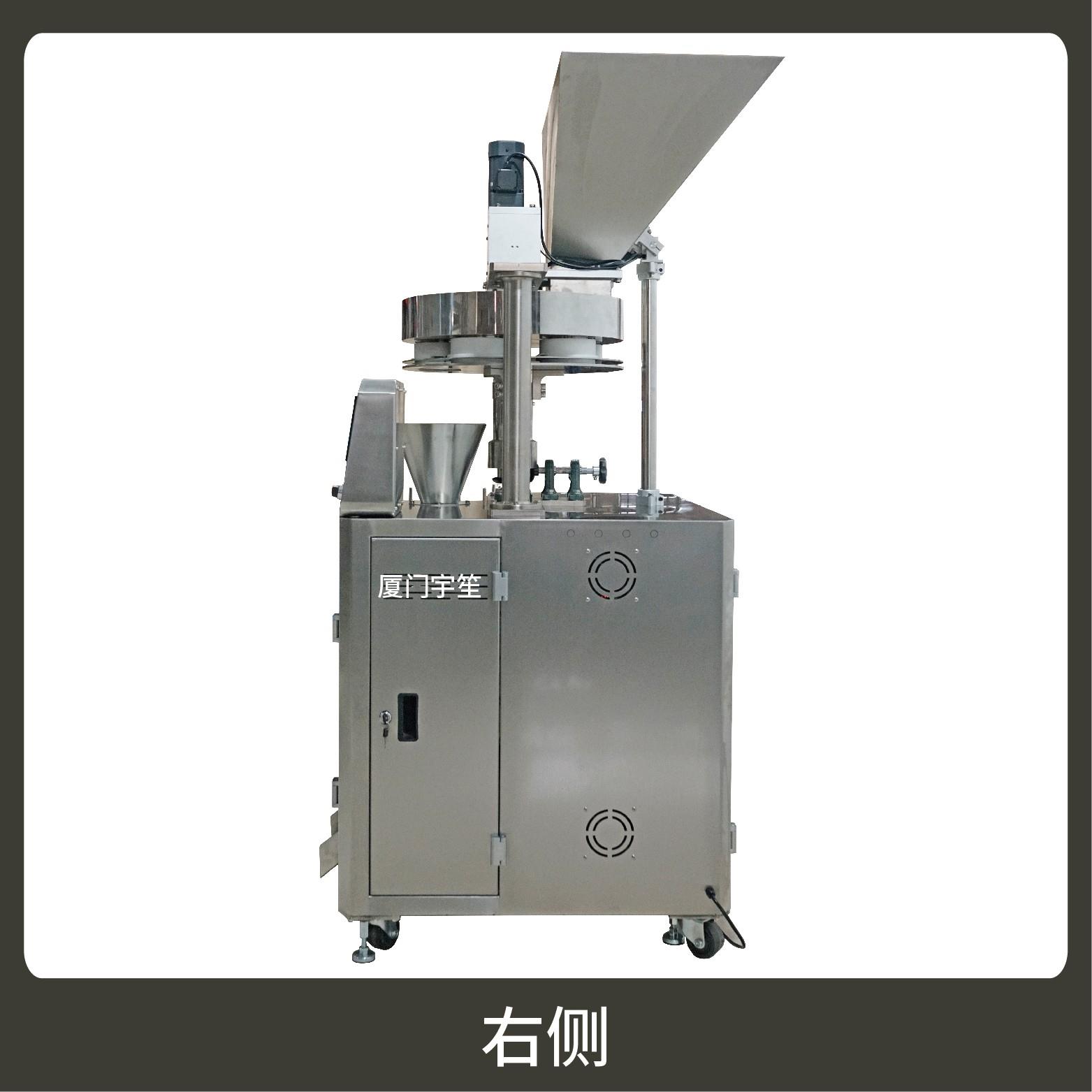 2、調試方便,占用空間小。包裝流程全自動,無需人工操作。可根據充填物料的性質選配不同的下料結構。