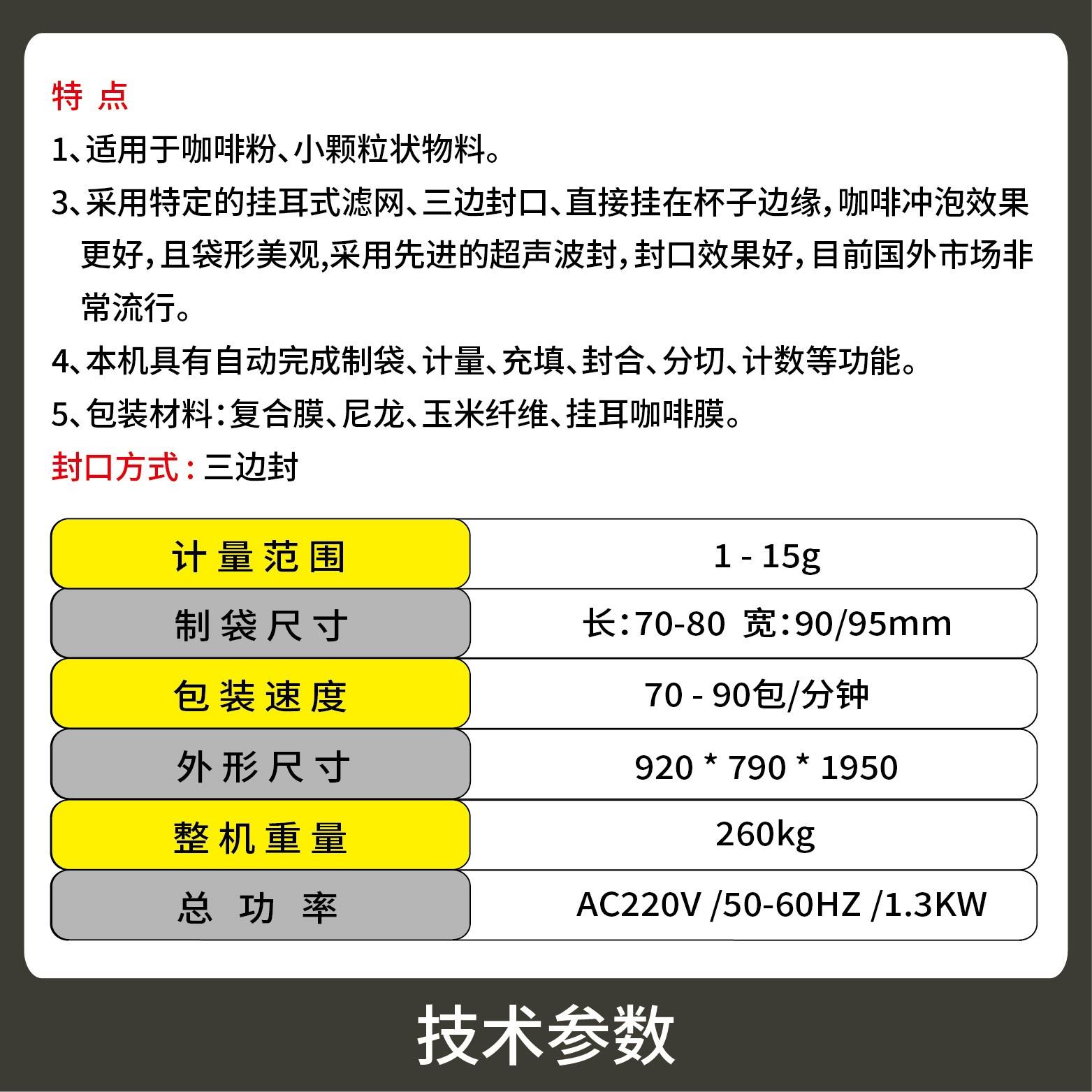 1、適用于咖啡粉、小顆粒狀物料。