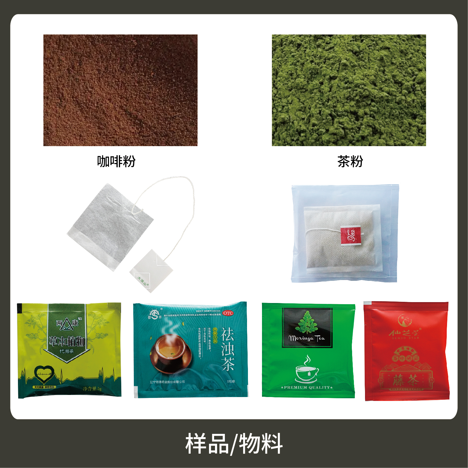 5、包裝材料:茶葉濾紙、棉線、復(fù)合膜及標(biāo)簽。