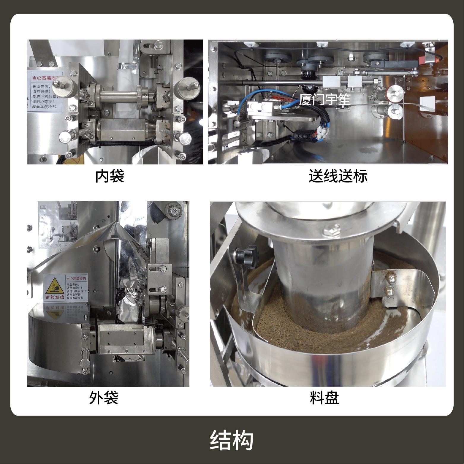 適用于茶葉、藥茶、保健茶草根類等小顆粒物的內(nèi)外袋一次性包裝。